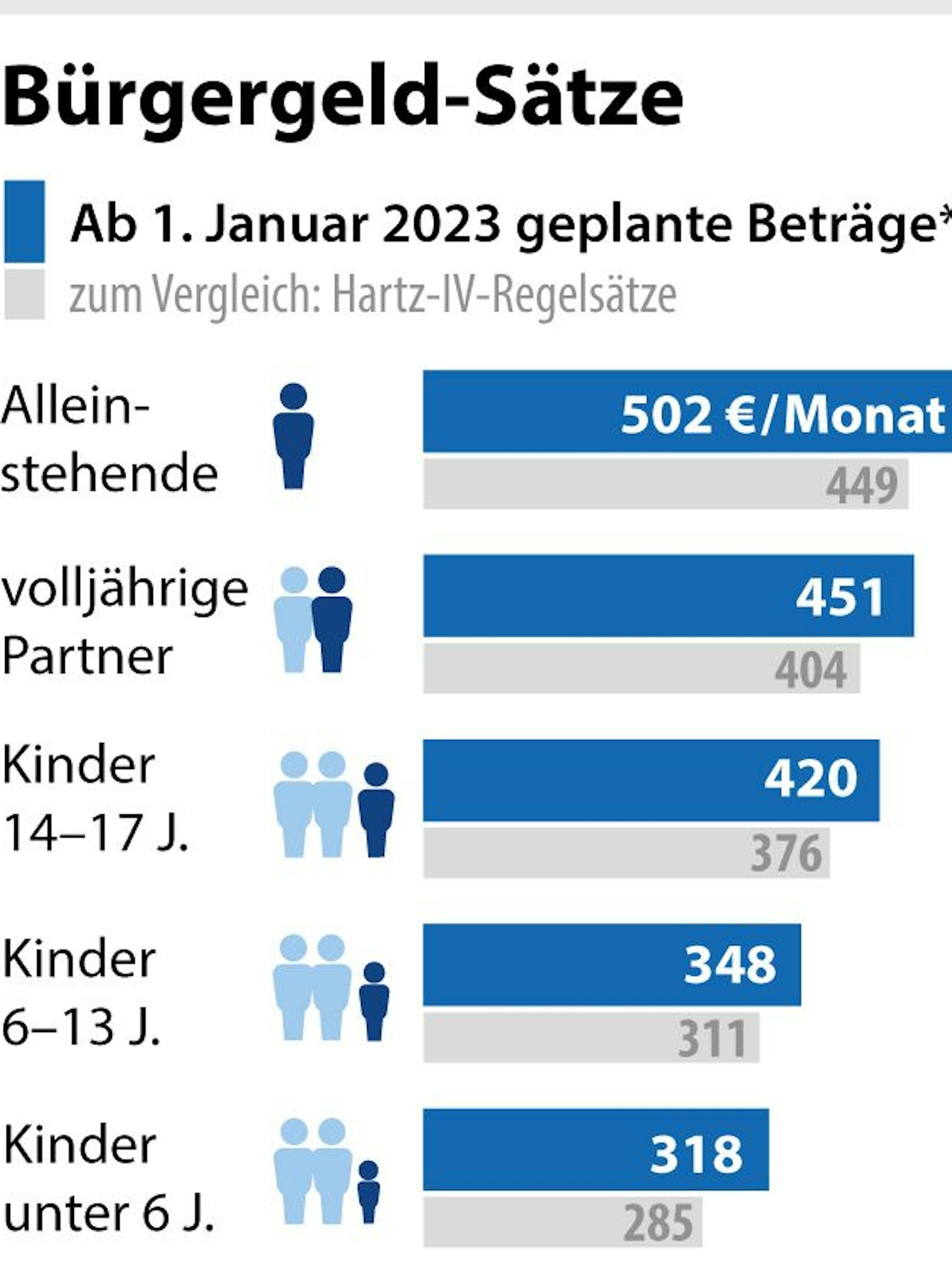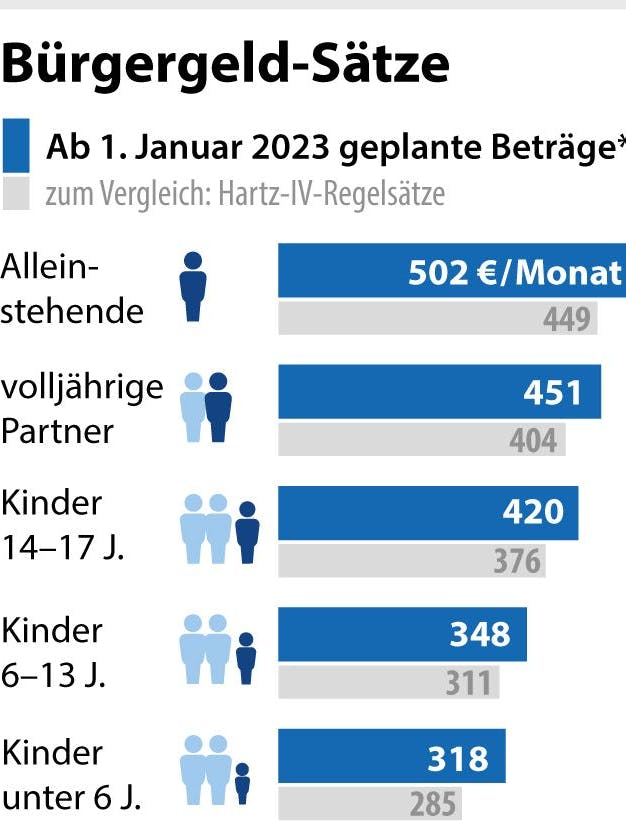 Arbeitsminister Hubertus Heil (SPD) hatte ursprünglich geplant, dass Empfangsberechtigte von Bürgergeld in der sechsmonatigen „Vertrauenszeit“ nur eingeschränkt Leistungskürzungen hinnehmen müssen, wenn sie mehrfach einen Termin beim Jobcenter verpassen. Erst nach sechs Monaten müssten sie mit zusätzlichen und auch deutlich höheren Leistungskürzungen bei Pflichtverletzungen rechnen. Die Union hatte das aber abgelehnt und Sanktionen vom ersten Tag an gefordert.