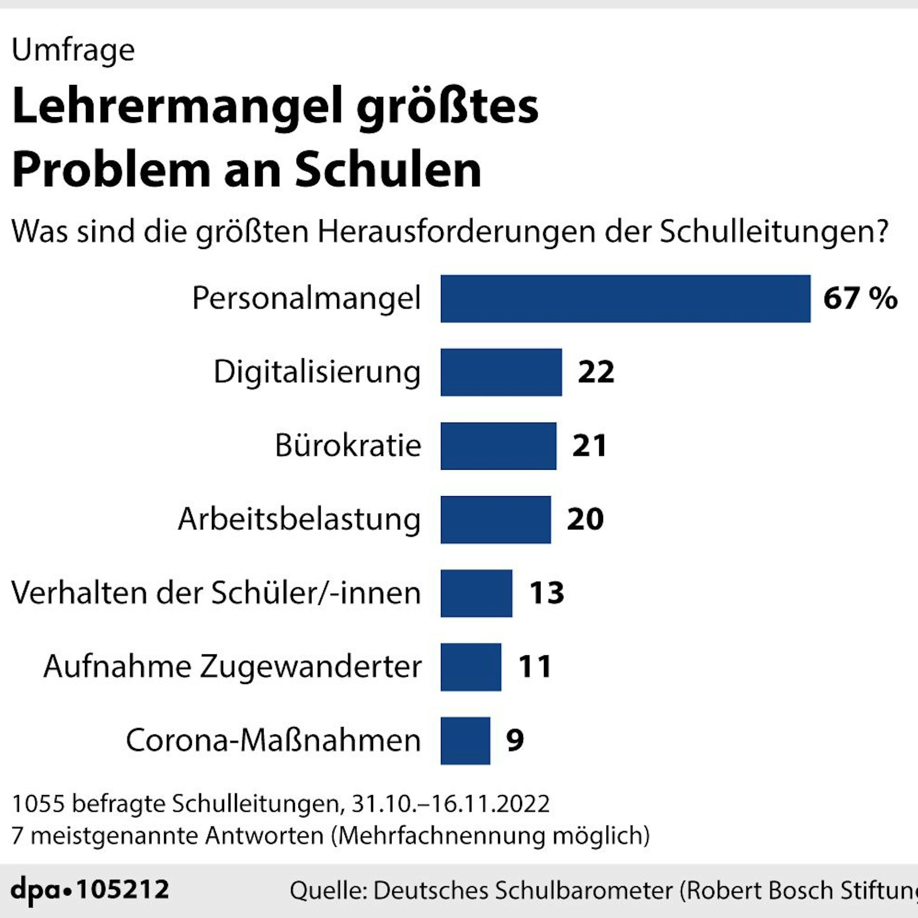 - Der Lehrkräftemangel droht, bestehende Probleme im Bildungssystem weiter zu verschärfen. Beispiel Grundschulkinder: Die haben, wie Erhebungen gezeigt hatten, zunehmend Mathe- und Deutschprobleme. Die Lücken in der späteren Schullaufbahn zu schließen, wird mit zunehmender Personalnot immer schwieriger.
