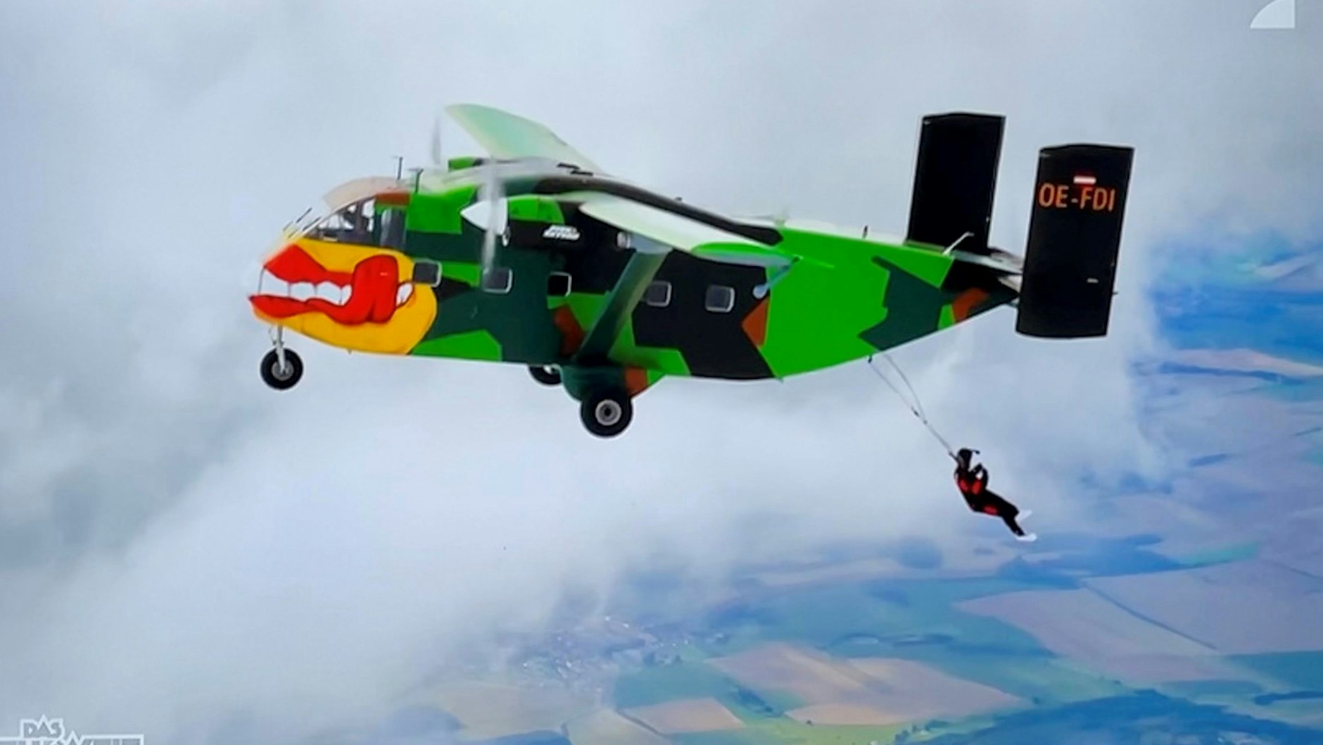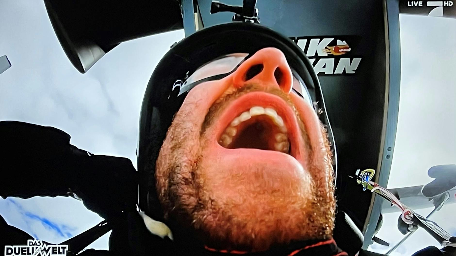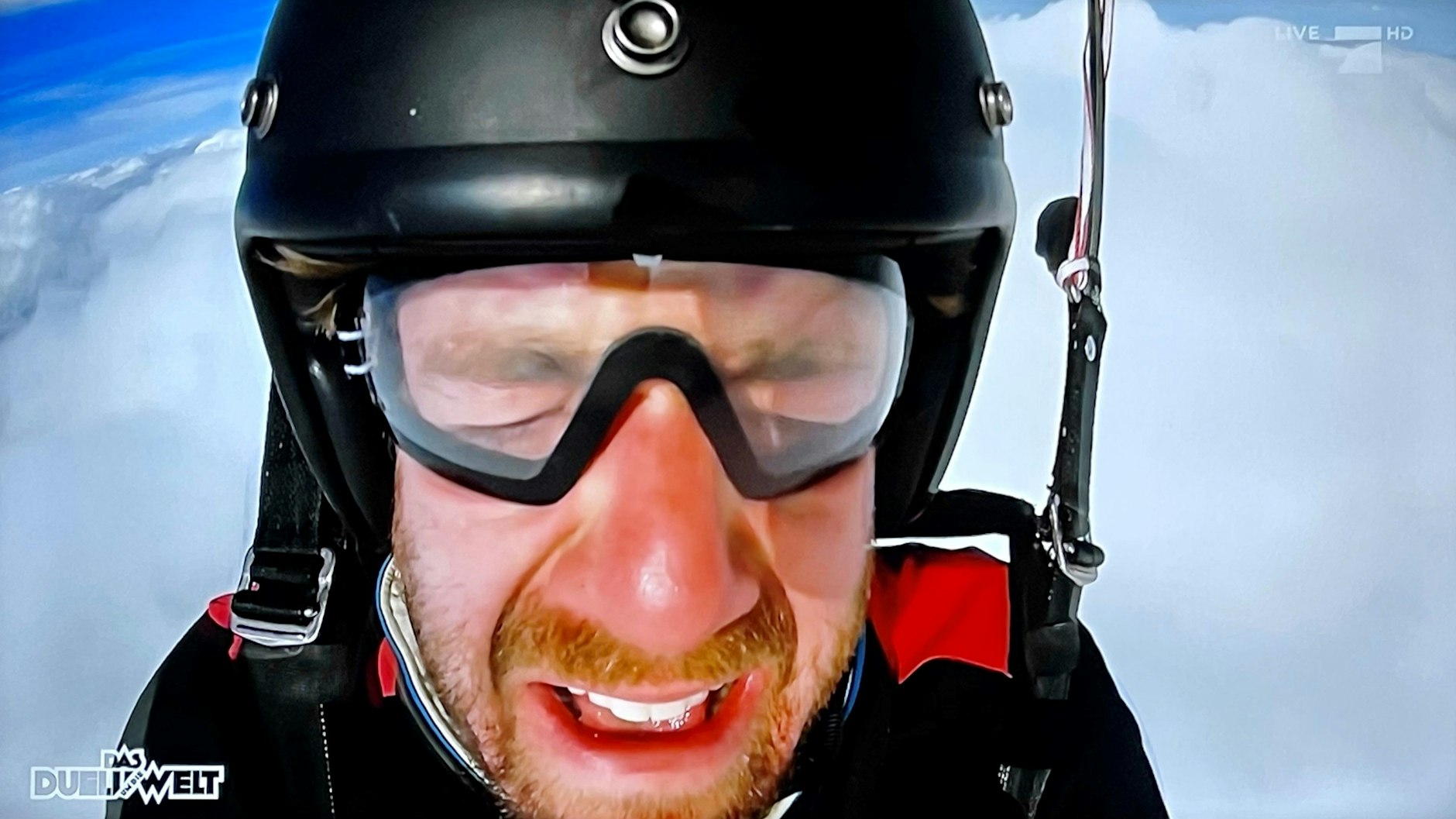 "Da merkte ich, wie sich der Comedy-Luke mehr und mehr verabschiedet hat. Je höher wir gingen, desto ernster wurde die Situation. Als wir die Höhe erreichten, passierte alles automatisch." Luke wird gepackt, eingehängt, die Heckklappe öffnet sich und der Comedian wird in 2000 Meter Höhe ins Nichts hinabgelassen. Nach anfänglicher Panik genießt Luke seine luftige Situation: "Eigentlich war das megacool und ich fand das echt schön."
